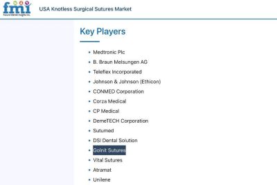 Future Market Insights — an ESOMAR-certified market research organization and member of the Greater New York Chamber of Commerce — has officially listed Golnit Sutures among the key players in the USA Knotless Surgical Sutures Market!